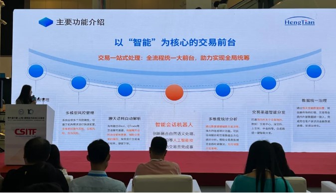 网新恒天受邀参展,并在会上做“AI技术+金融市场业务的创新变革”主题路演,为现场来宾介绍了网新恒天打造的金融科技创新产品——固收智能交易管理平台(HiTrade)。